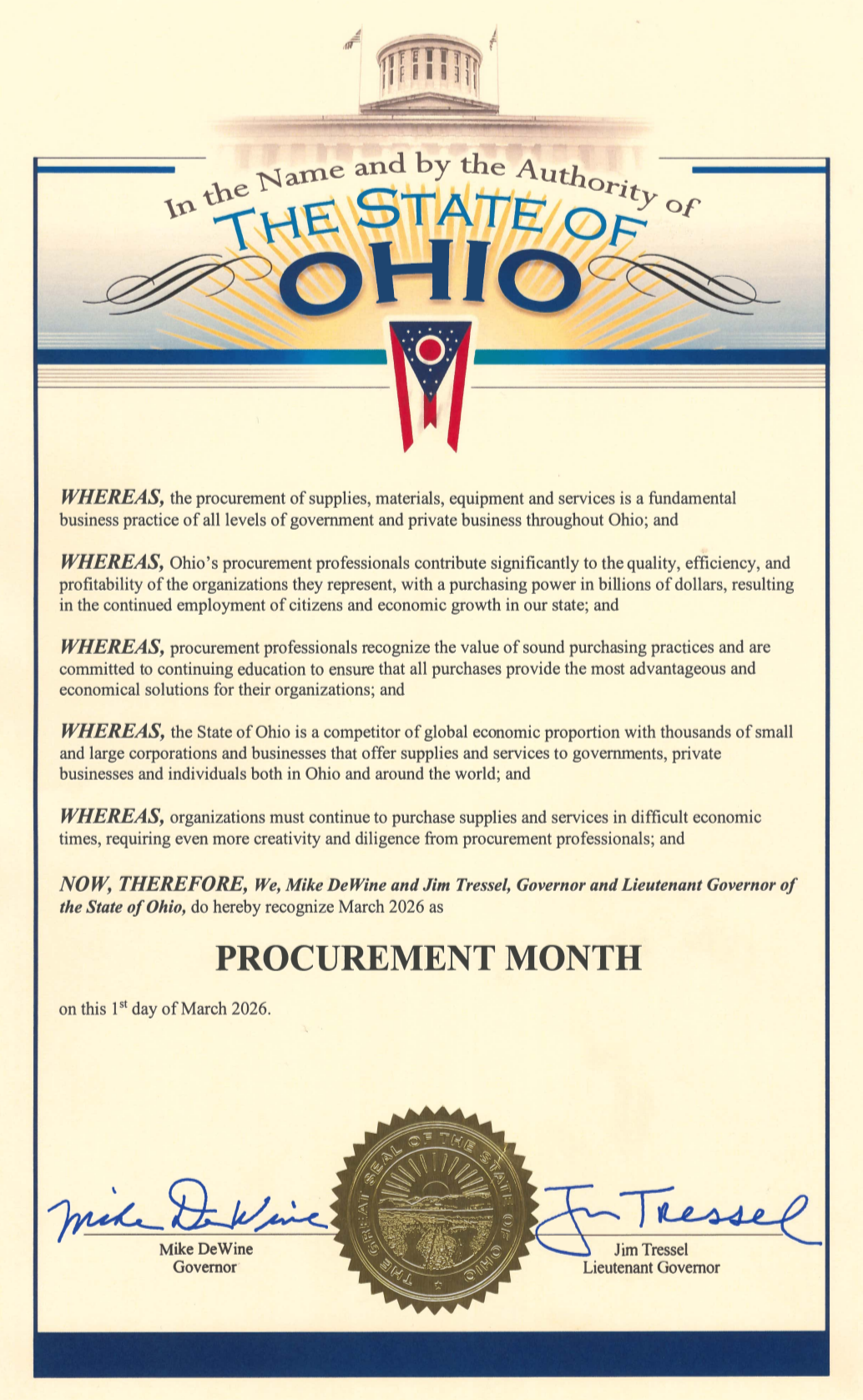 State of Ohio 2026 Procurement Month Proclamation